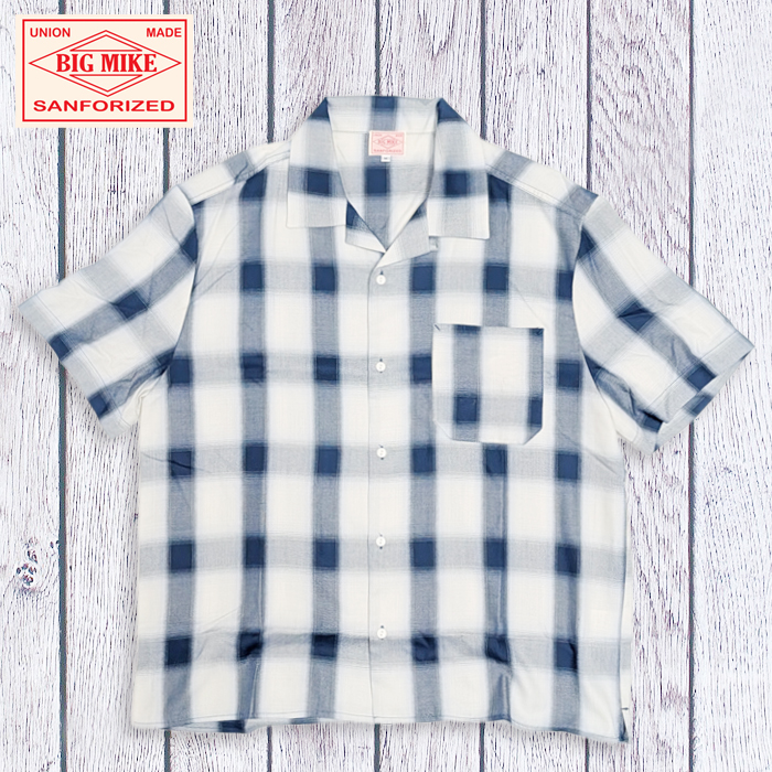 BIGMIKE ビッグマイク オンブレチェックシャツ 半袖シャツ オープンカラー レーヨン混
