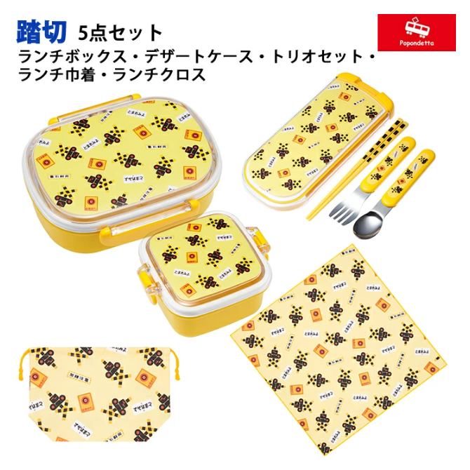 ポポンデッタ 踏切 お弁当 セット お弁当箱 トリオセット デザートケース 巾着 クロス 5点セット ランチ ふみきり