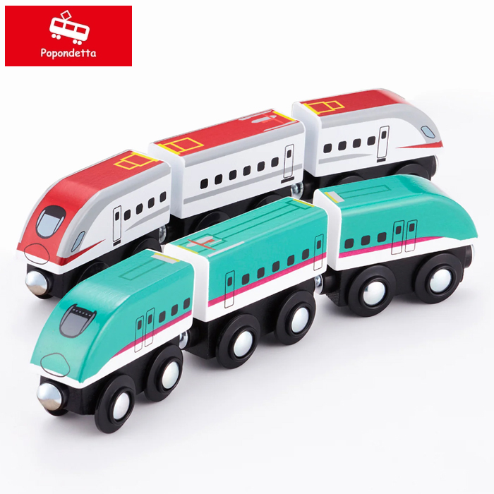 moku TRAIN で一番人気のE5系新幹線はやぶさとE6系新幹線こまちがひとつになった連結して遊べるセットです。
