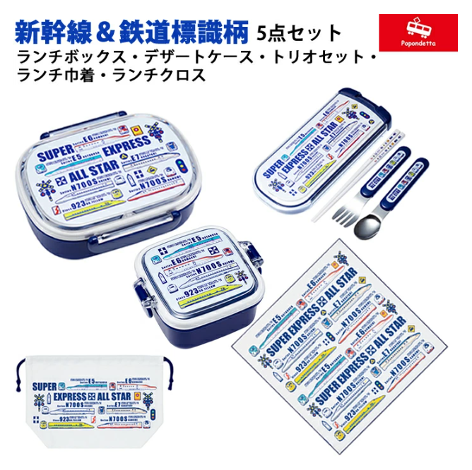 ポポンデッタ 新幹線&鉄道標識 お弁当 セット お弁当箱 トリオセット デザートケース 巾着 クロス 5点セット